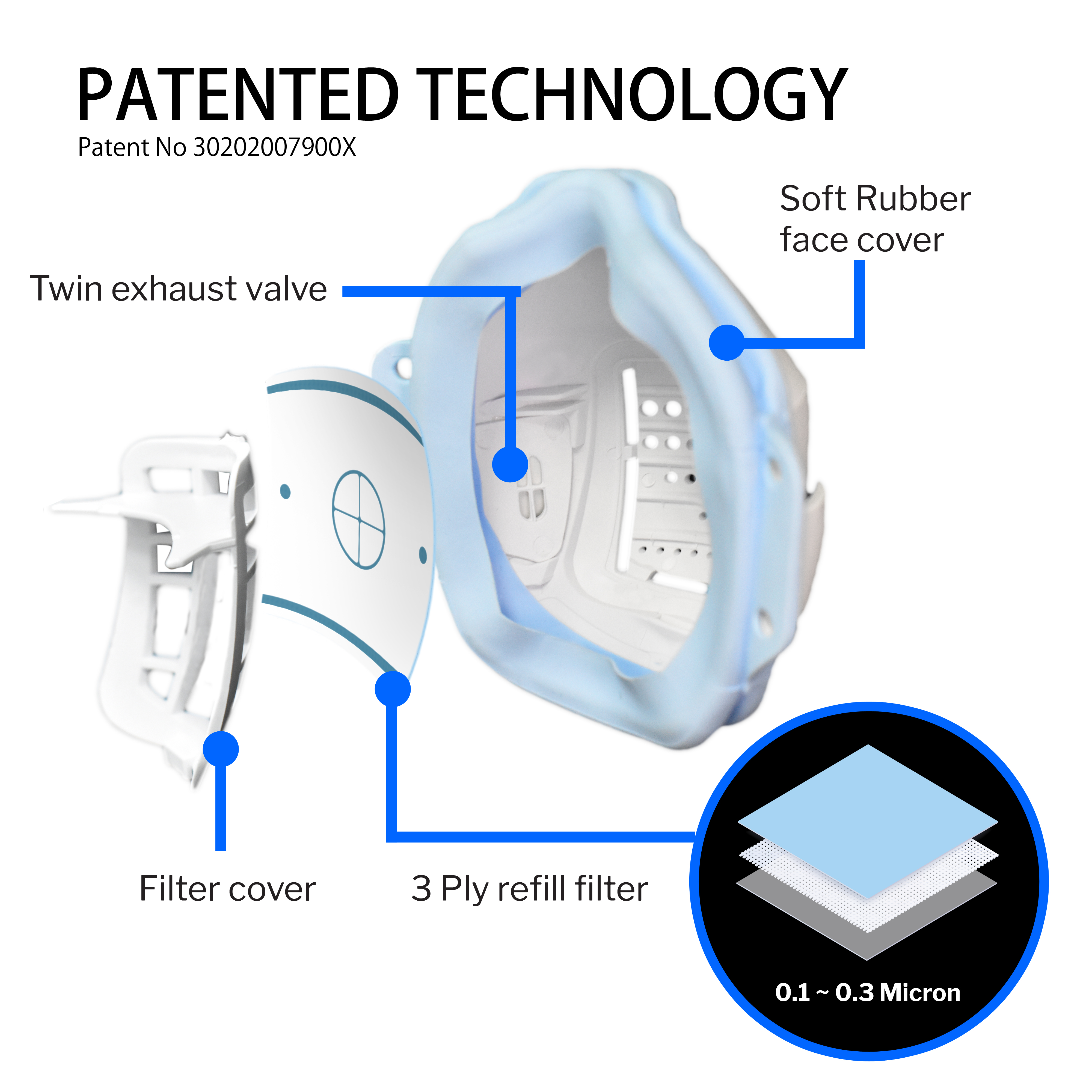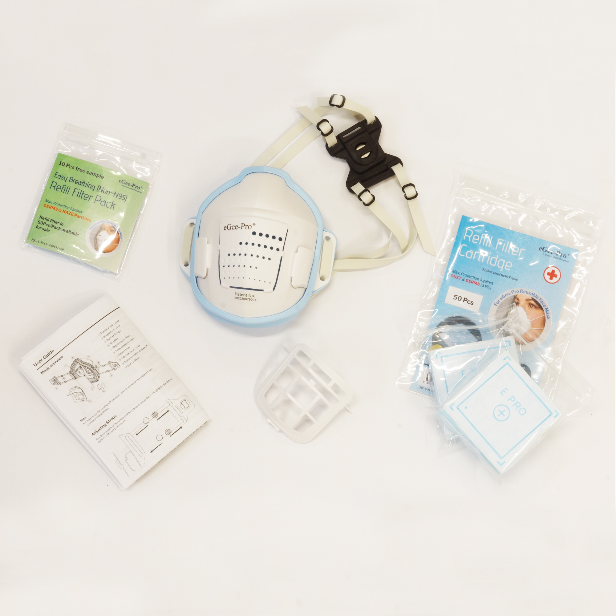 eGeePro Reusable N95/99-Grade MASK (Premium Model GP620) + 50 Pcs ANTIVIRAL Refill Filters to Protect Against VIRUS at CROWDED AREAS; Shopping, MRT, Schools, Offices - DISCOUNT 35% OFF [LIMITED TIME]