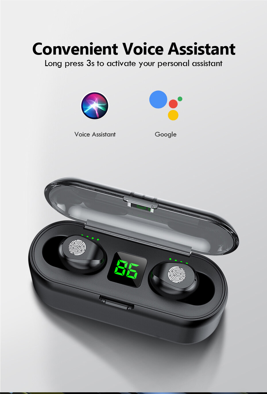 Vitog F9 Bluetooth Earphone with Mic,Touch Control HD Stereo TWS Wireless Earbuds with LED Display,Low Latency Waterproof Sports Bluetooth Headset for Xiaomi iPhone Huawei Samsung ViVo Oppo Realme Mob