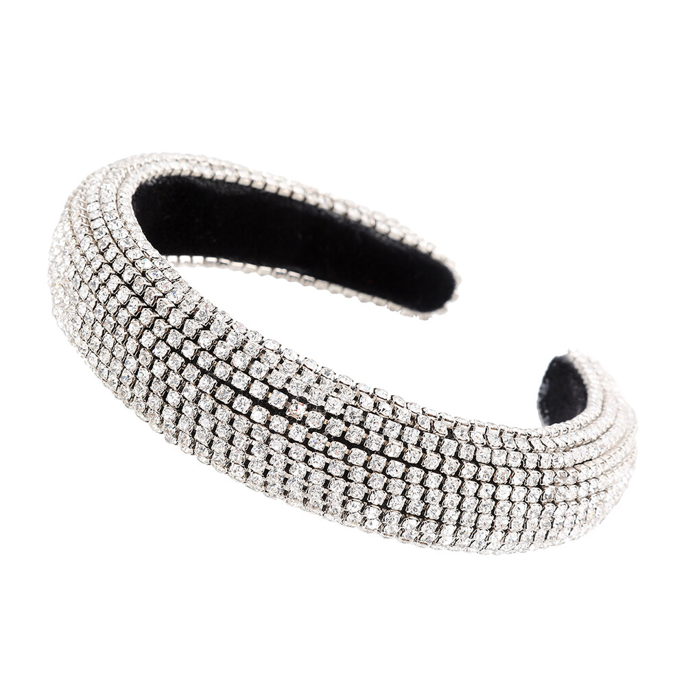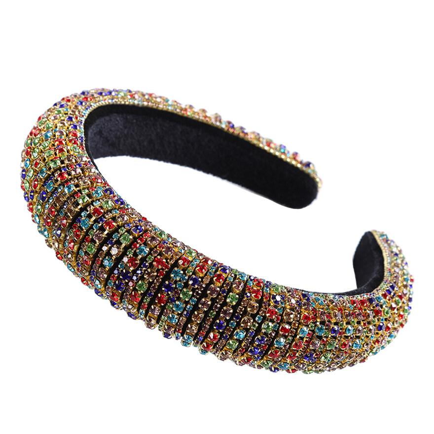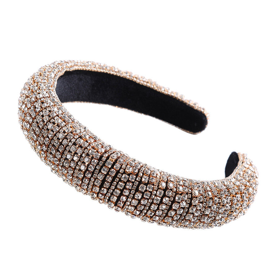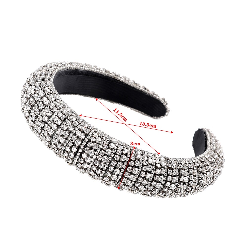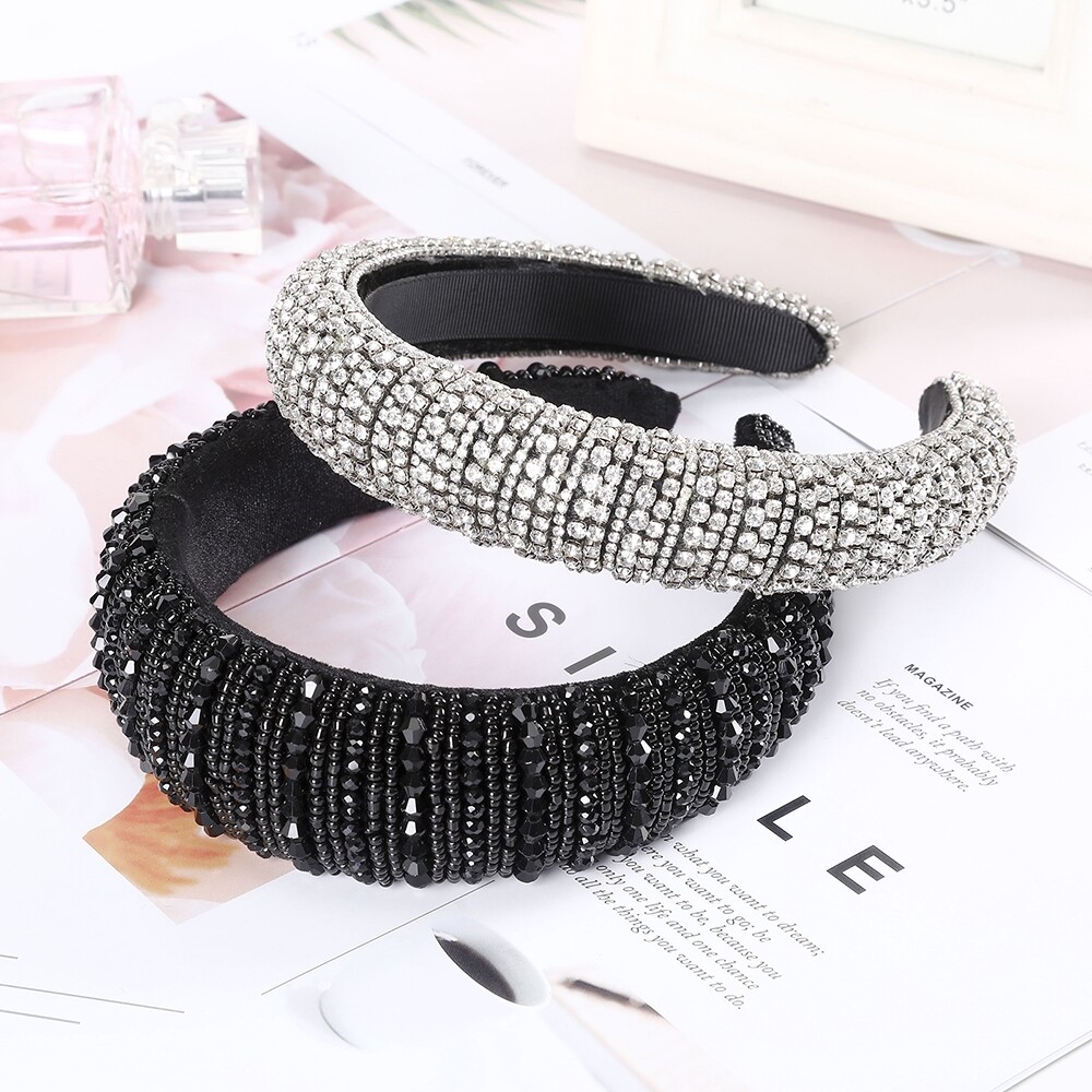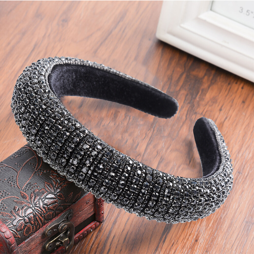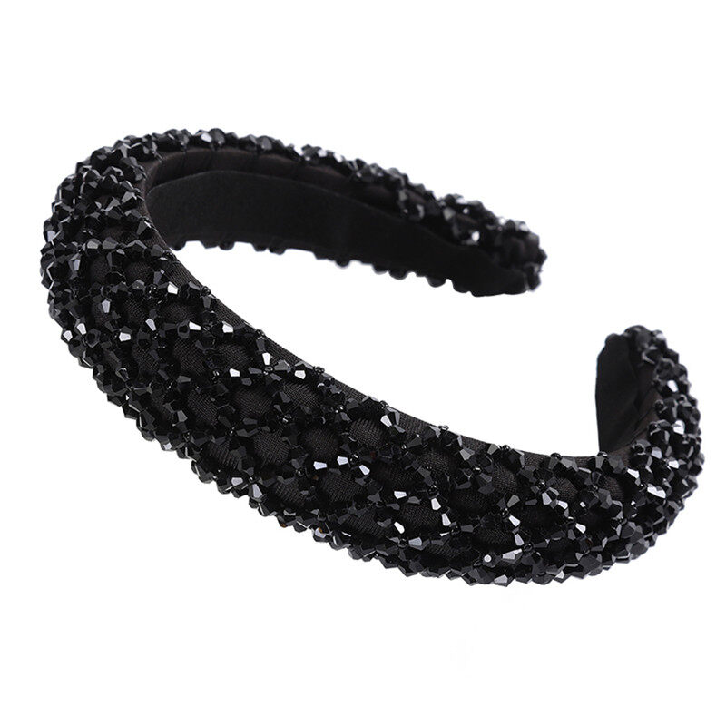 Woman Luxury Full Diamond Beads Crystal Hair Band Retro Rhinestone Padded Sponge Wide Headband Crown