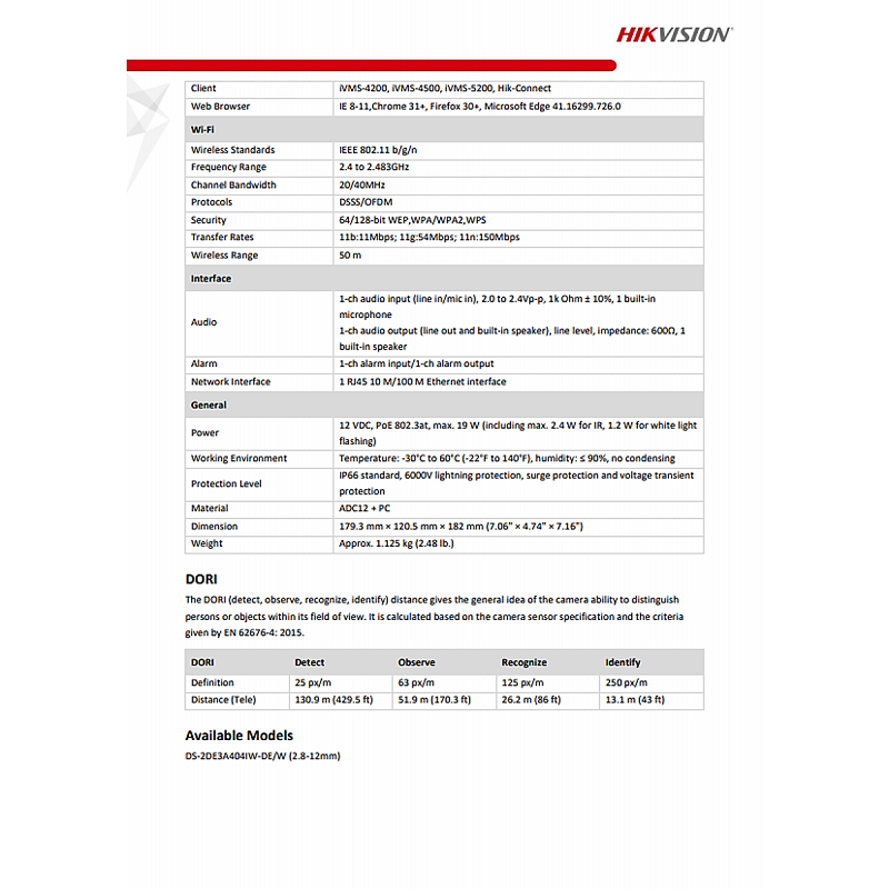 Hikvision Wifi DS-2DE3A404IW-DE/W (2.8-12 mm) 4MP 4X Optical Zoom IR WiFi Network PTZ IP Camera