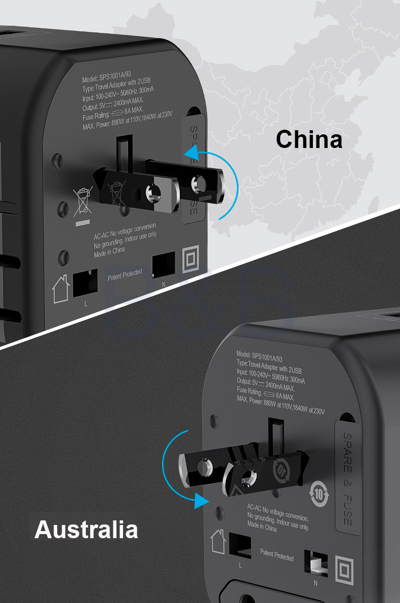 • Travel Essential : Built in with US/UK/AU/EU adaptor supports outlet in North America, UK, Continental European, Australia, Japan, Iceland, India, Ireland, Thailand, South Korea, China etc., more than 150 countries all over the world.