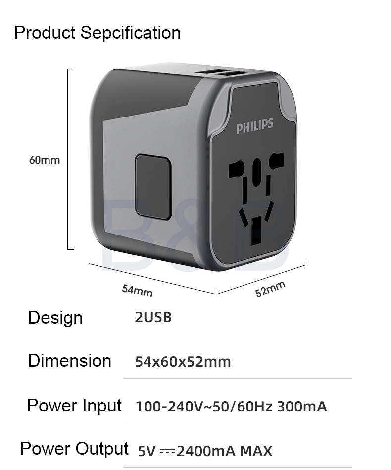 • Philips Newest model of 2USB PortTravel Adaptor, Never worry about USB is too less to use