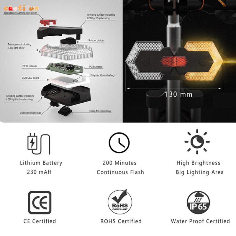 Caotilun Intelligent Wireless Bike Turn Signal Lights Front and Rear LED Direction Indicator Bicycle Accessory