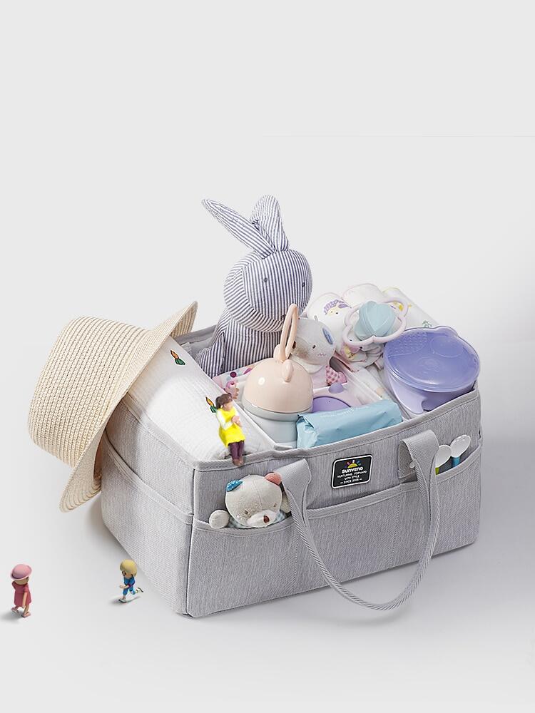 Remove the diaper organizer insert to use as a toy storage bin, baby hamper or nursery basket for additional nursery storage. Our lightweight, portable diaper caddy is waterproof and made of soft felt and features sturdy outer pockets for additional baby storage.
