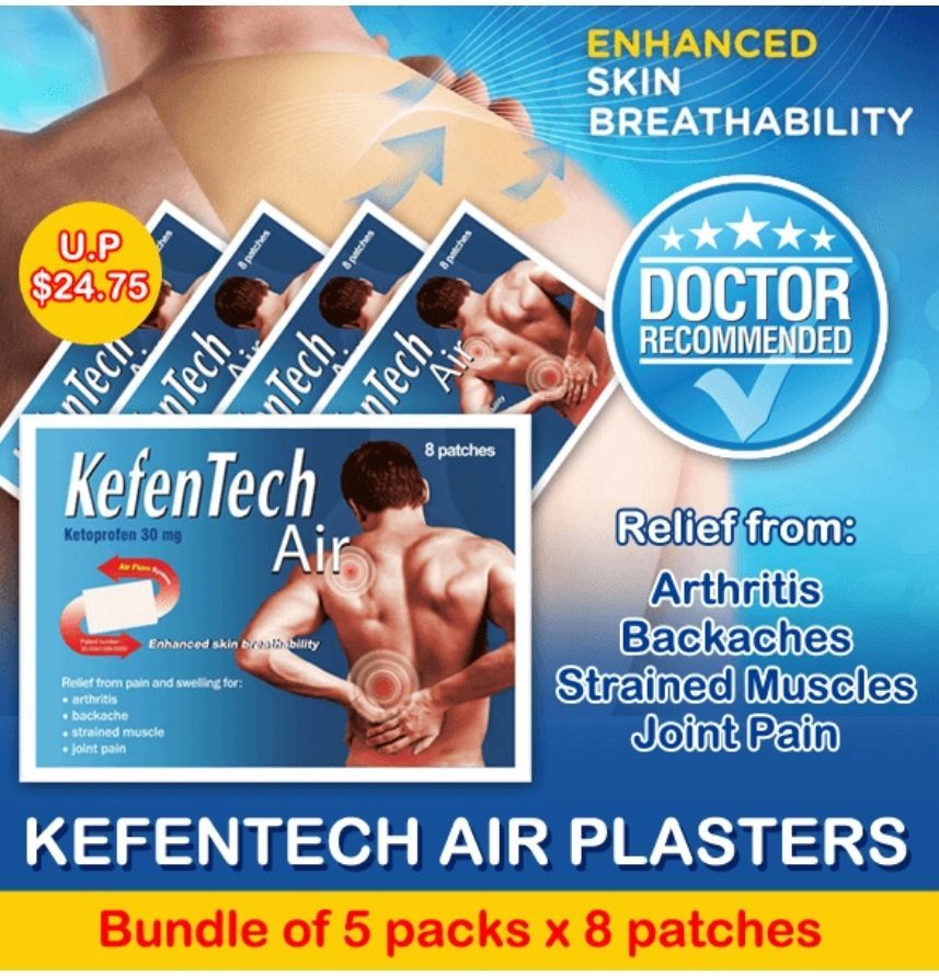 Keto-profen is a medicine that is used to relieve pain and swelling. Kefentech plaster is designed to deliver keto-profen through the skin to the target area, providing relief for arthritis, tennis elbow, muscle ache, sports and exercise related injuries, such as sprains, strains and bruises.