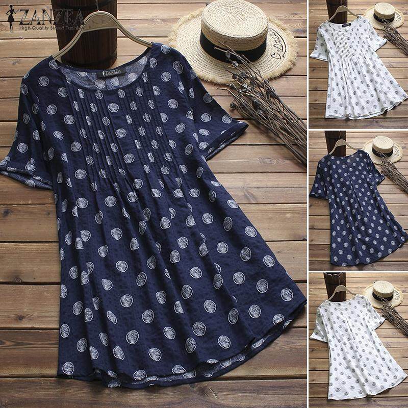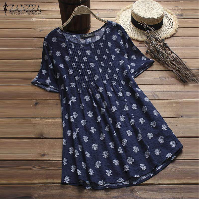 Muangee Women Vintage Retro Pullover Top Tee T Shirt Cotton Polka Dot Flare Tunic Blouse ZANZEA
