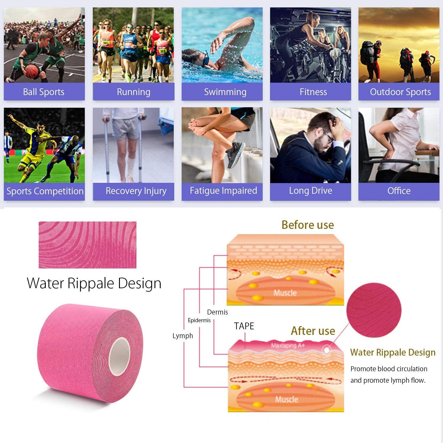 Kinesiology Tape Kinematic Tape Muscle Patch, Sports Tape Supports and Protects Muscles, Knees, Shoulders and Plantar Fasciitis,Hypoallergenic, Breathable, Professional & Olympic Choice