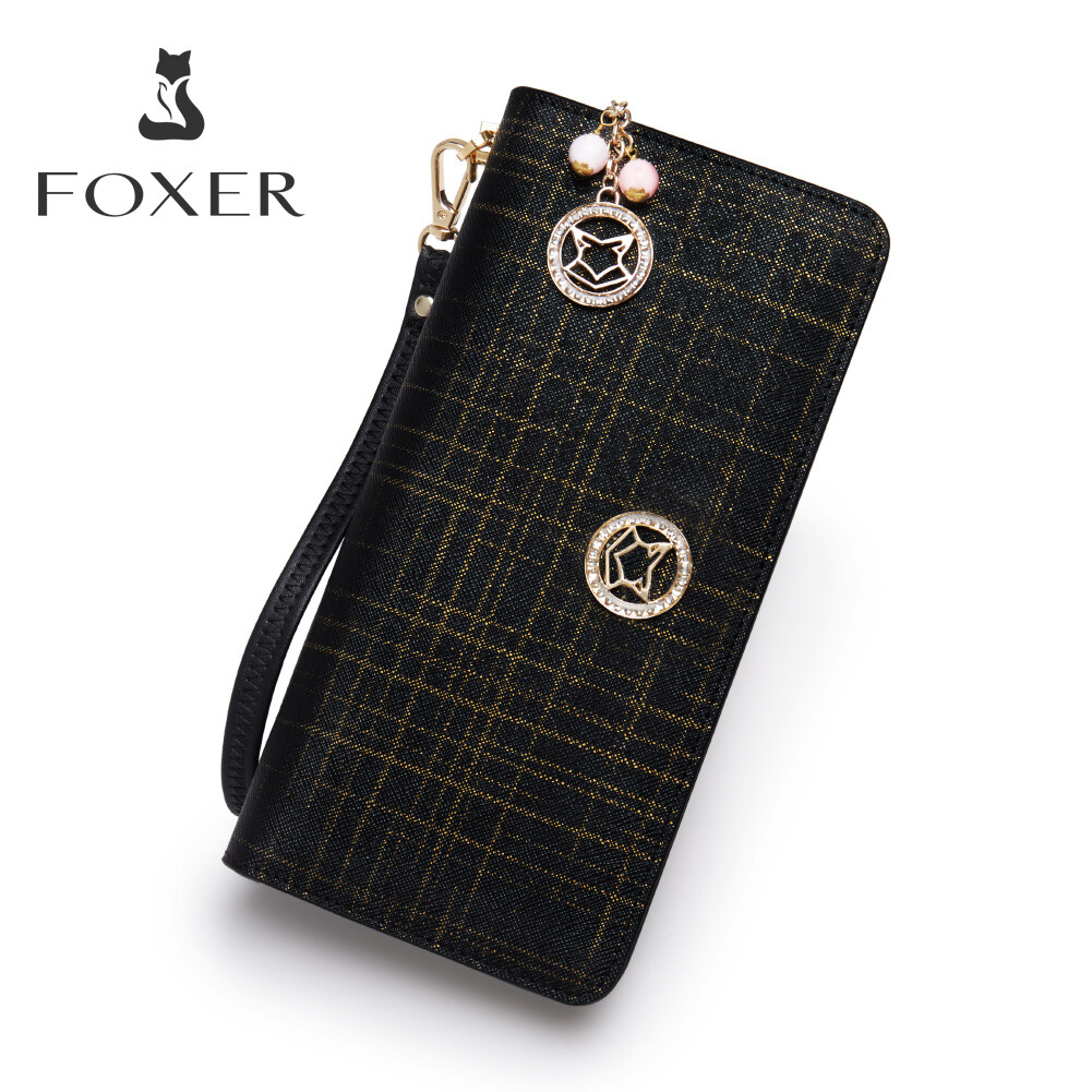FOXER Brand Women Cow Leather Wallet Simple Coin Purses Fashion Zipper Long Wallets Female Clutch Bag Multifunction Card Holder