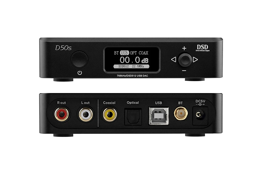 TOPPING D50s DAC is certified by the Japan Audio Society for wired and wireless Hi-Res Audio. The Bluetooth 5.0 CSR8675 chip supports AAC/SBC/aptX/aptX-LL/aptX-HD/LDAC codecs. At the same time, Bluetooth can be easily turned off from the main menu or by using the remote control.