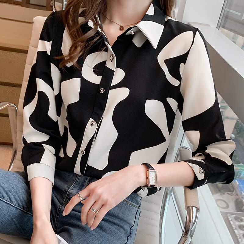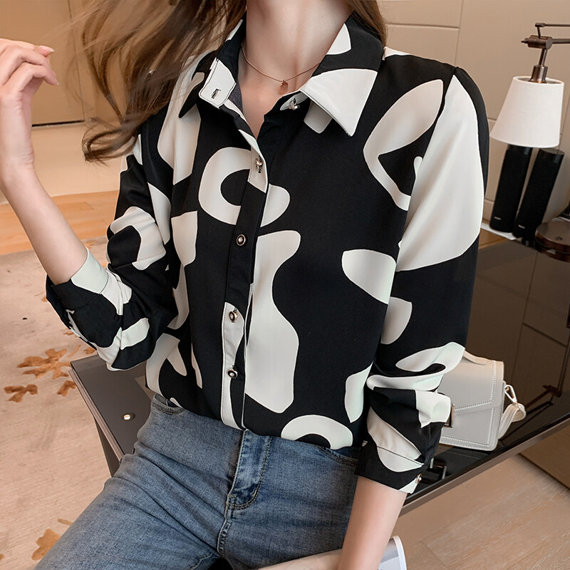 AFEG new women's long-sleeved printed chiffon elegant blouse for women