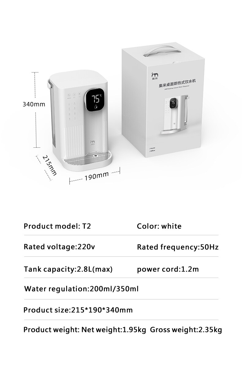 Xiaomi JMEY T2 Instant Hot Water Dispenser Instant Hot Water Dispenser Home Desktop Water Dispenser Mini Portable Tea Making Bar One-button Intelligent Speed Heating 4-stage Water Temperature Electric