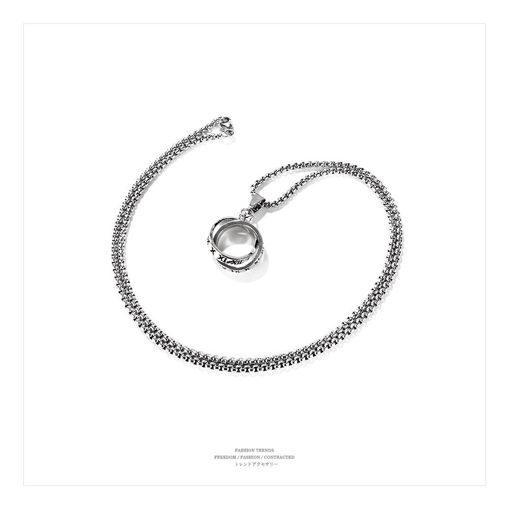 OPK European And American Classic Personality Double Ring Ring Men's Necklace Korean Version Of Men's Trendy Roman Numeral Titanium Gold Men's Silver Ring Accessories