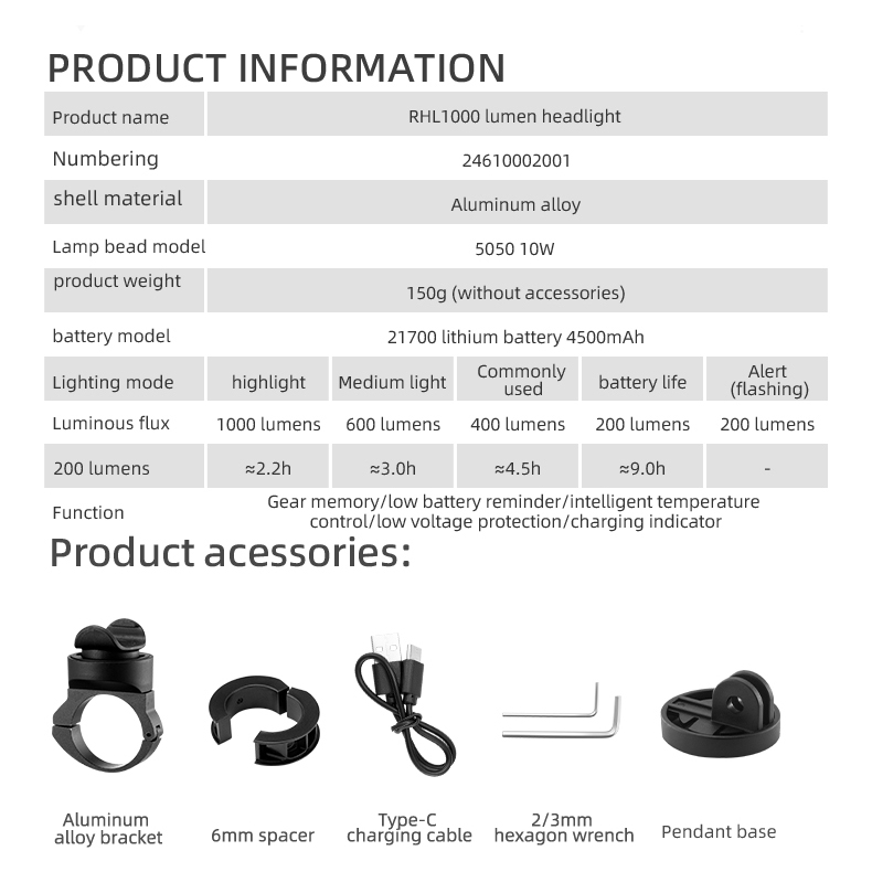 ROCKBROS Bike Light 1000Lumen Waterproof Rechargeable 4500mAh Long Battery Life Front Flash Light Aluminum Shell Bike Front Light Bicycle Headlight Bicycle Light Bicycle accessories