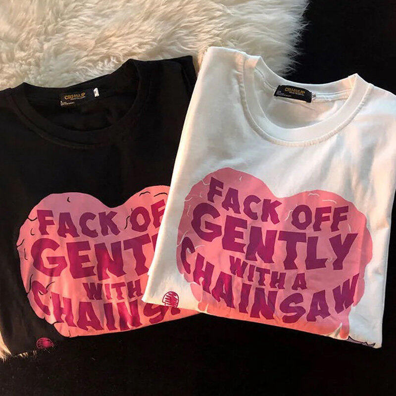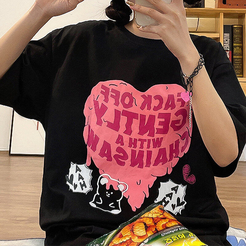 INWPLLR Fashion Trends Letter Tops Women Heart-shaped Printing T-Shirts Summer Korean Style Short Sleeve Little Bear Print Tshirt Lady