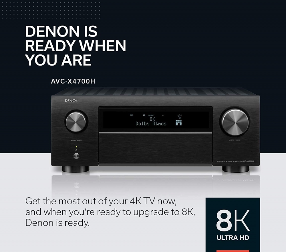 Discover a new world of home entertainment with the new Denon AVC-X4700H. Nine discrete, identical amplifiers rated at 200W each, and 11.2 channel processing capability with two ADI Griffing Lite DSPs will let your home cinema shine in breathtaking Dolby Atmos, DTS:X, IMAX Enhanced and Auro-3D immersive surround sound. The AVC-X4700H supports the latest HDMI video technologies such as 8K/60Hz and 4K/120Hz pass-through, Dolby Vision, HDR10, HDR10+, Dynamic HDR, HLG, as well as 8K upscaling and HDCP 2.3 support on all HDMI inputs (8 in/3 out).