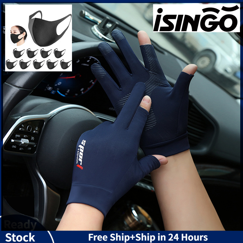 iSingo 【C O D】1 Pair Touch Screen Gloves Motorcycle Motor Gloves Racing Protective Gloves Breathable Ice Silk Non-Slip Anti-UV Outdoor Sports Riding Gloves