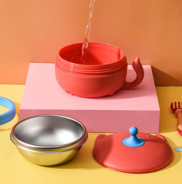 Baby Stainless Steel Insulated Bowl Removable Baby Suction Bowl Children's Tableware Set