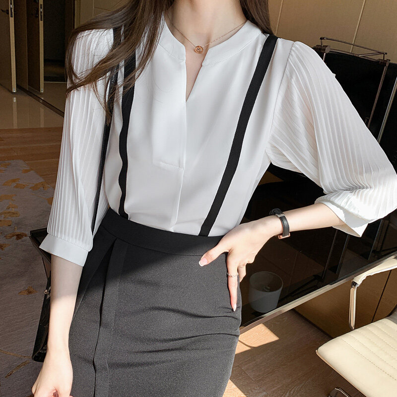 YIGE Elegant Blouse Dress Plus Size Summer 2022 V-Neck Chiffon Tunic