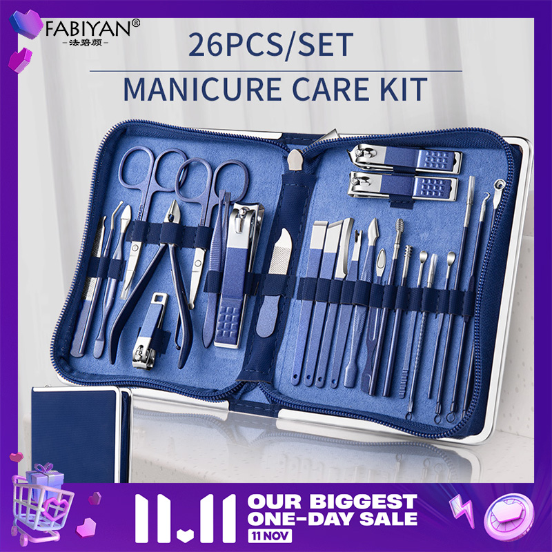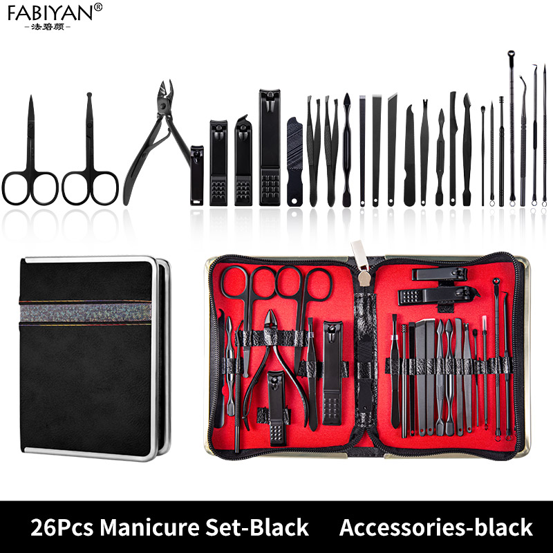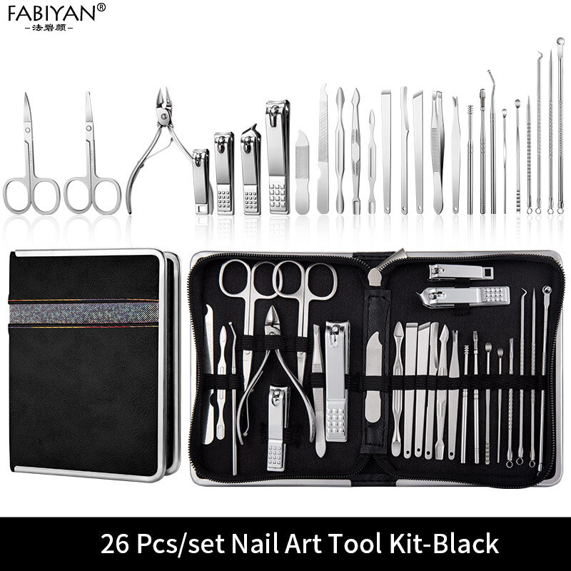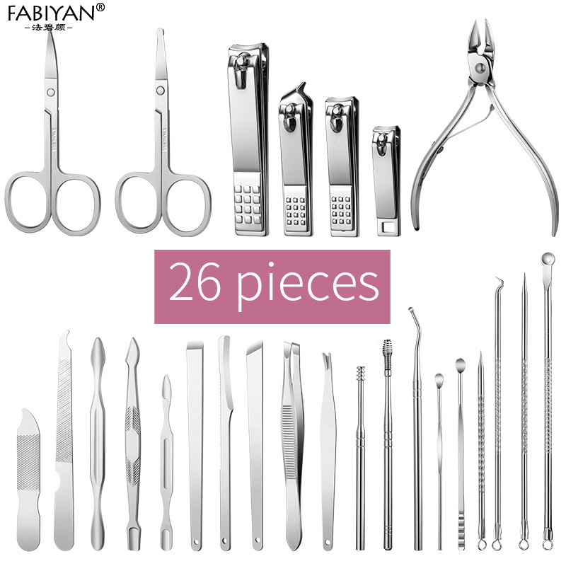 26Pcs Set Stainless Steel Nail Clippers Manicure Pedicure Nail Personal Care Salon Cuticle Nipper Clipper Cleaning Tools Nail Art Tools Kits