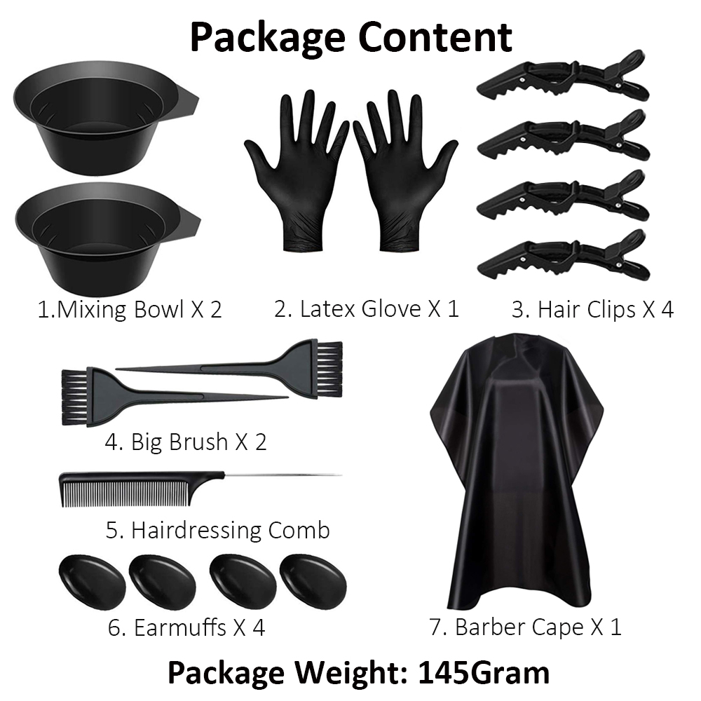 The hair color dye kit includes all the necessary items perfect for home or salon professionals.
