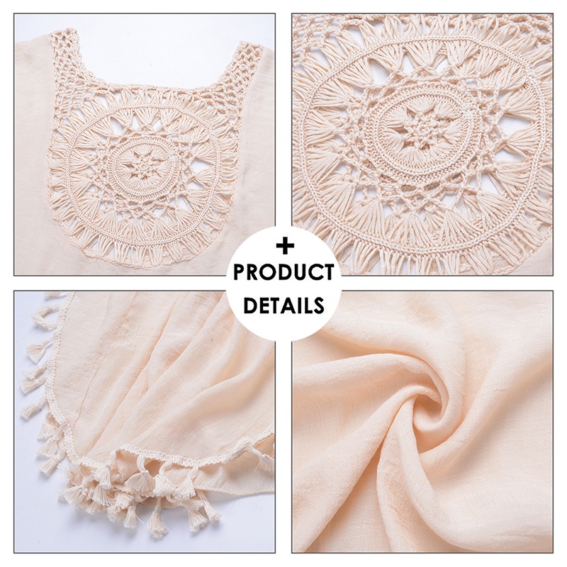 Features: V-neck, see-through, fringe, solid color, loose, crochet eyelet, hollow, stylish and unique, can help improve women's charm.