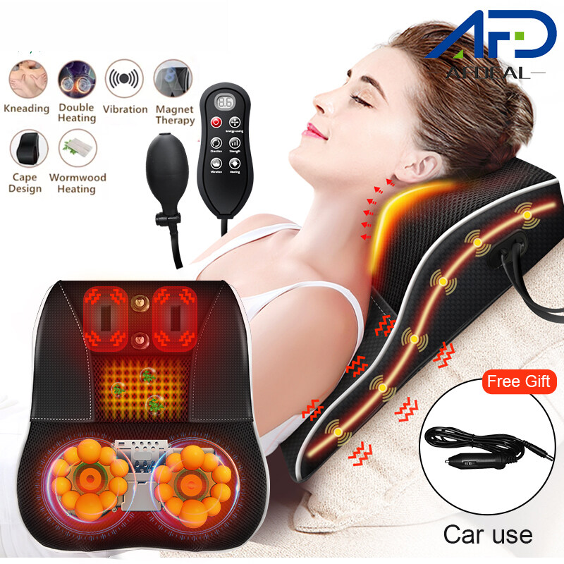 Afdeal Neck Massager with Hand Control Body Massage Machine Electric Kneading Heating Vibration Massage Pillow for Back Waist Home Office Car Use