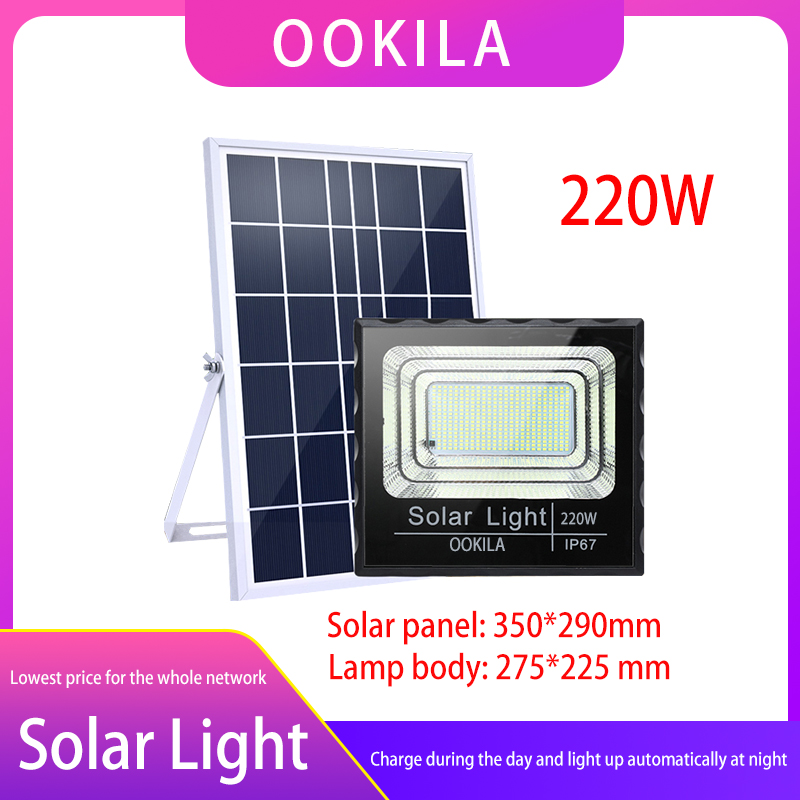 220W: Solar panel: 350*290mmThe lamp body: 275 * 225 mmBattery capacity: 20,00mah Lighting duration: 8-24 hours