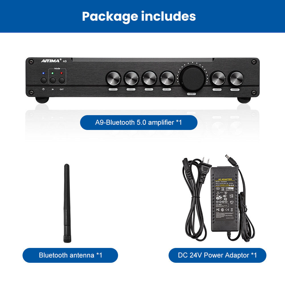 5.1 channel amp with professtional DSP decoding: A9 with built-in DSP decoding chip which applies professional algorithms and dynamic separation techniques, it auto allocates and simulates 2.1 and 5.1 channel and provide excellent smart noise reduction, precise sound positioning and stereo surrounded sense even though playing audio files of 2.0 channel.