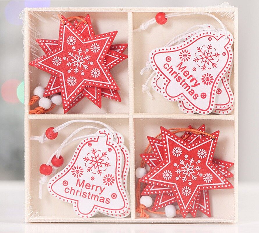 12pcs/lot Christmas Tree Ornament Wooden Snowflake Hanging Pendants Xmas Decoration For Home New Year Kids Gifts Party Favors