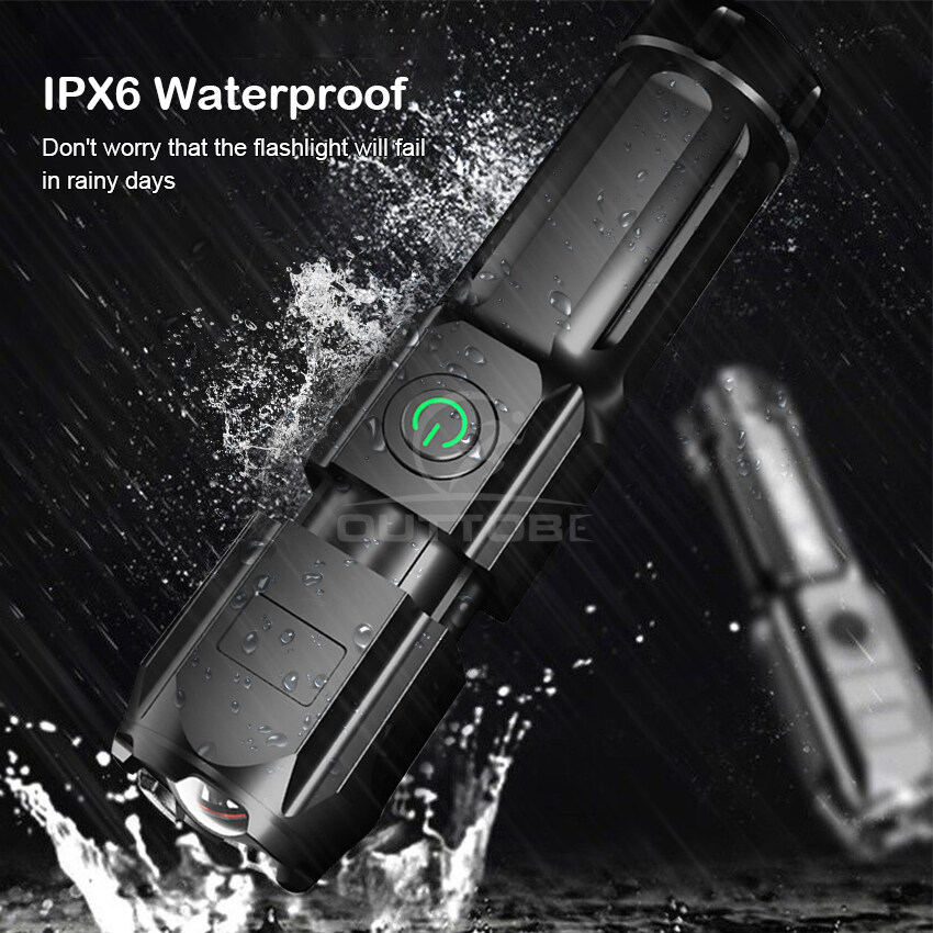Outtobe Powerful Flashlight waterproof original Bright Led Flashlight Outdoor Focusing Torchlight Portable Home Emergency Lamp Built-in Battery USB Rechargeable Torchlight Zoom-able focus Light T6 Pe