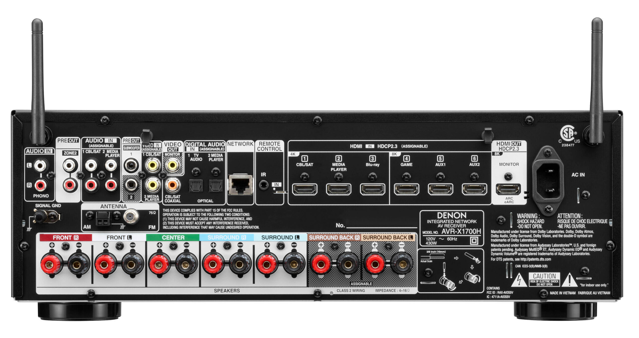 Denon AVR-X1700H 7.2 Ch AVR (2021 Model), Advanced 8K Upscaling, 3D Audio - Dolby Atmos & DTS Virtual:X, Amazon Alexa - Black