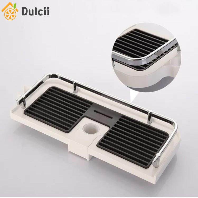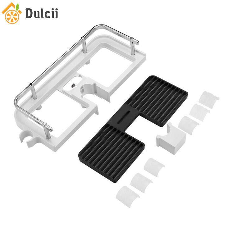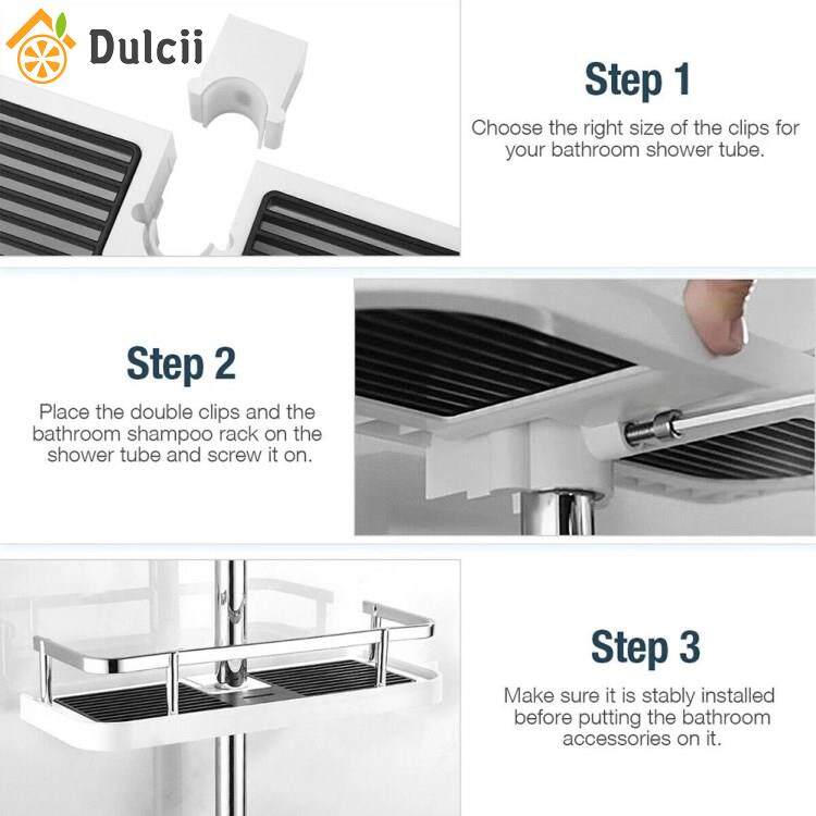 Dulcii Bathroom Pole Storage Shelf No Drilling Lifting Bar Shampoo Tray Shower Head Holder with Double Hooks Simple Bathroom Racks Shower Rack Bathroom Storage Basket