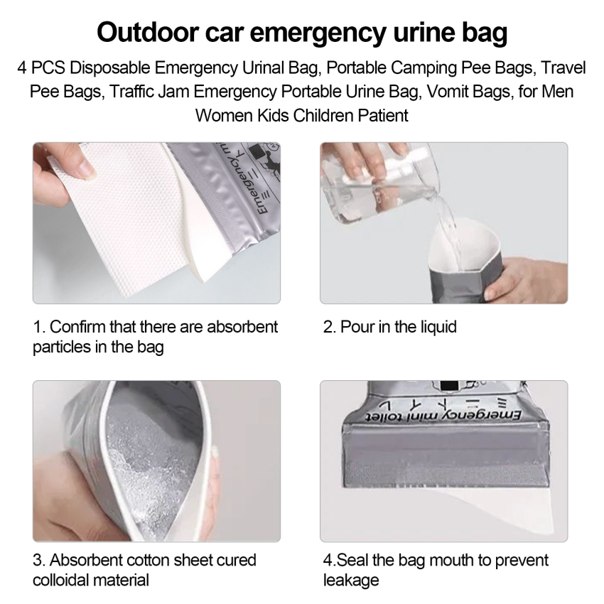 [Unisex design] 4 pack disposable urinal bags, unisex, suitable for (adult/child/elderly) use, used to relieve emergency urination, very suitable for traffic jams, babies, pregnant women or patients who need it.