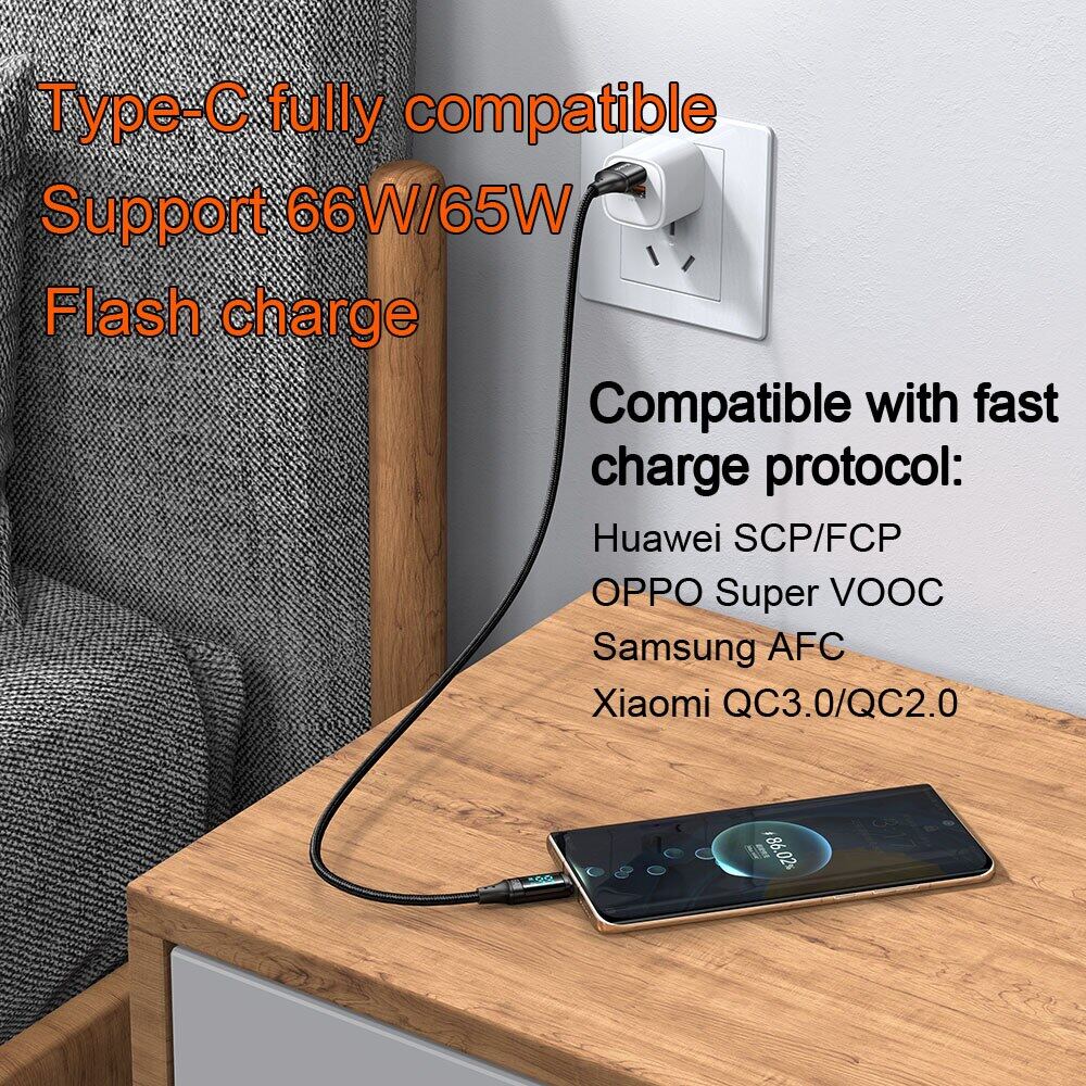 Mcdodo 66W USB Type C Cable For Samsung S22 S21 S20 Ultra Note 20 Huawei Mate 40 P50 P40 Xiaomi 11 6A Fast Charging Digital Display Mobile Phone Data Cord