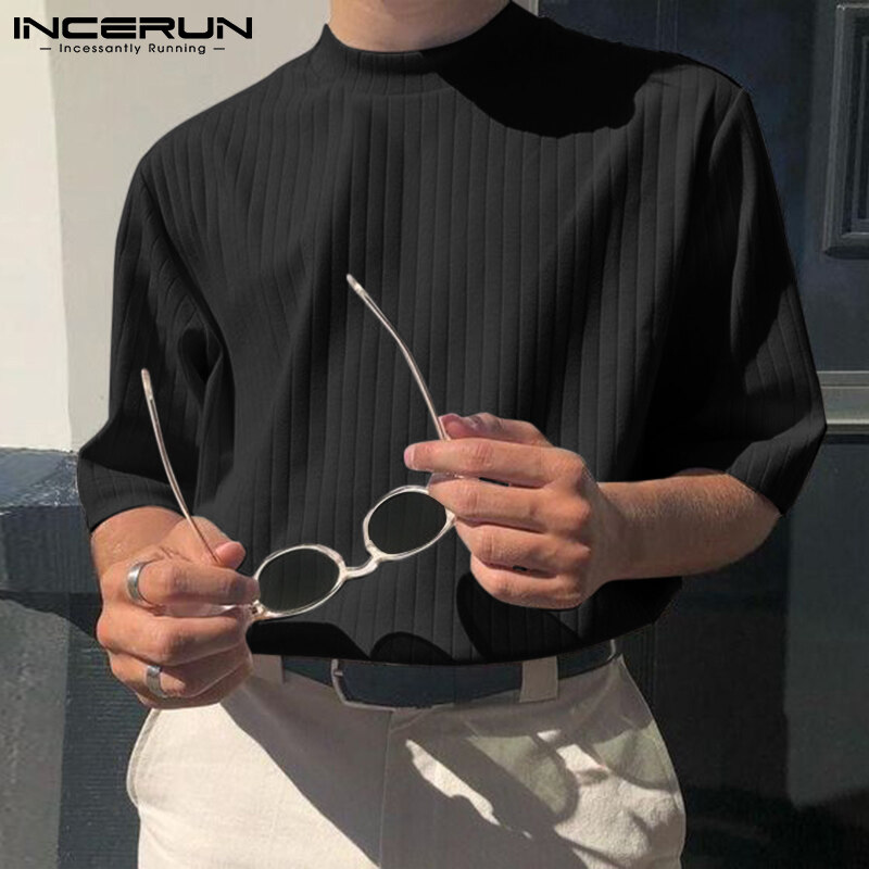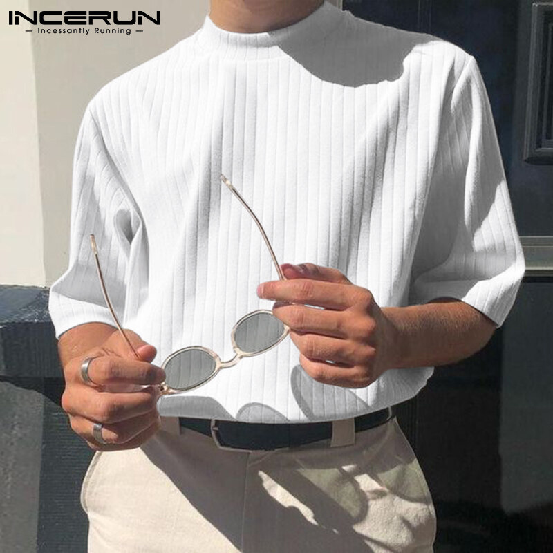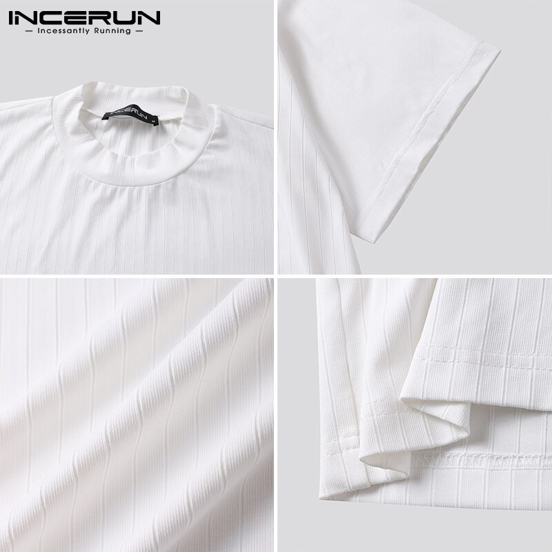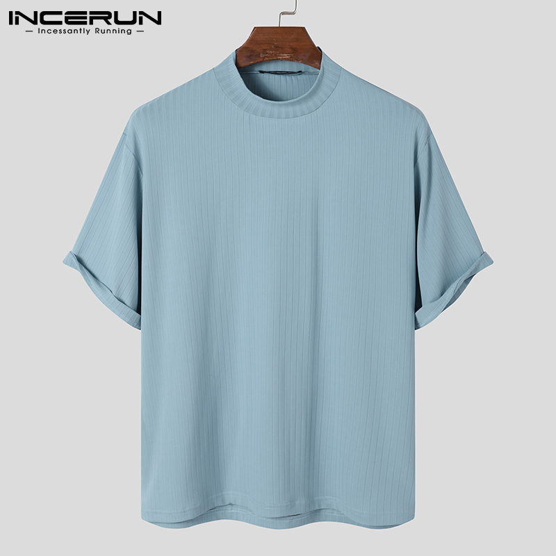 INCERUN Mens Short Sleeve Knitted T Shirts Casual Loose Fit Blouse Undershirt (Korean Style)