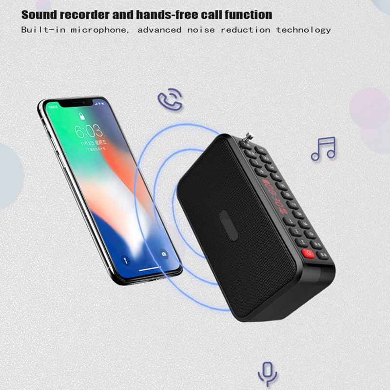Function: Bluetooth 5.0/Hands-free calll/Sound recorder/FM radio /TF card play /USB disk play FM frequency:87.5MHz~108MHz Rated power: 5w Frequency response: 100Hz~18KHz Size:133x41x74mm