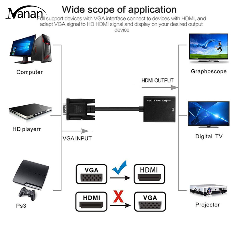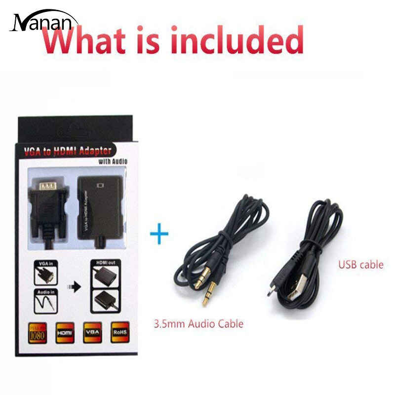VGA to HDMI Adapter 1080P HD Audio TV AV HDTV Video Cable with Audio