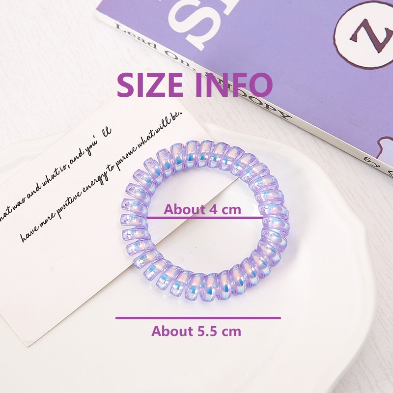 [SG?Lavender Violet Lover] 4pc 8pc 5cm Shining & Matte Purple Plastic Teleties Band Ponytail Holder, Telephone Wire Cord Spiral Head Ties Hair Band Hair Ring Hair Ties, Ideal Size to Wear as Bracelet