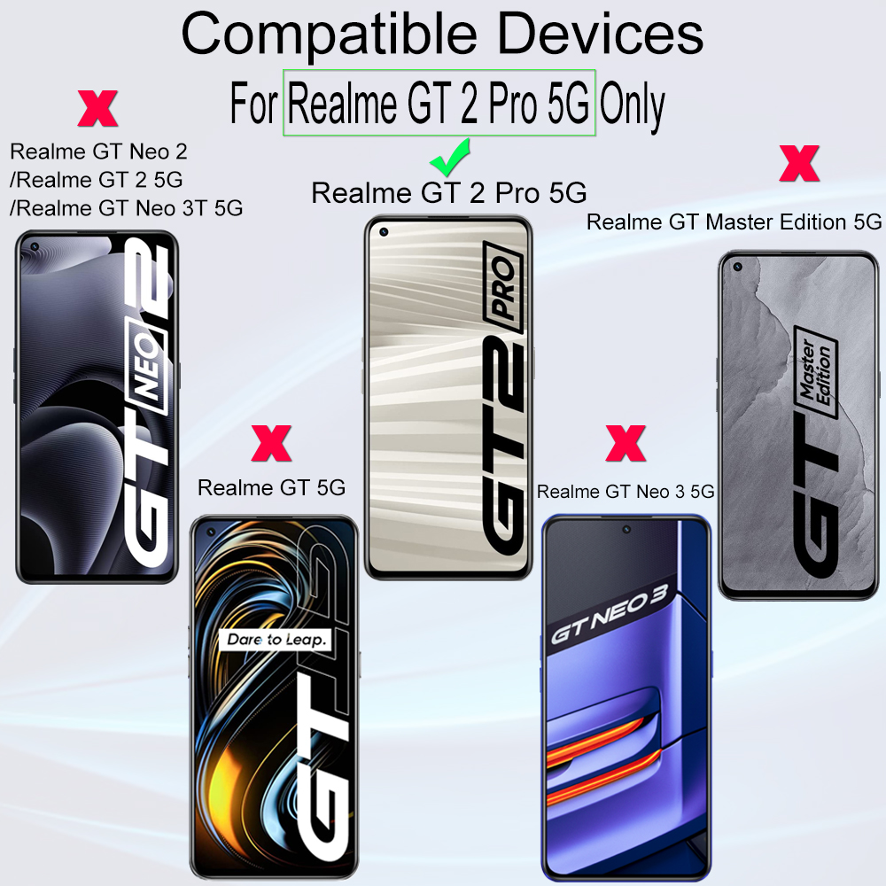 • [Case Friendly]:The screen protector is smaller than the device's screen due to Realme GT 2 Pro 5G curved edges design.The space between Realme GT 2 Pro 5G and the screen protector enables proper installation for most phone cases.