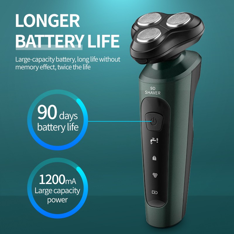 【WET AND DRY & EASY TO CLEAN】: The whole body of the electric razor is waterproof, allows you to use this electric shaver whether wet or dry. Enjoy your dry shaving when sitting on sofa, or do a refreshing and comfortable shaving in shower. The rotary shaver easily adapts to either shaving foam or gel for a smoothier and closer shaving experience.! Plus, this electric shaver is washable and easy to clean, that means including head and body of this electric razor can be washed directly by water