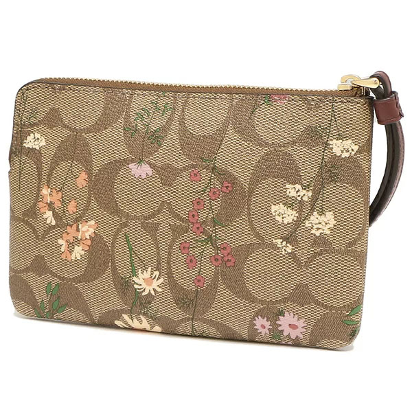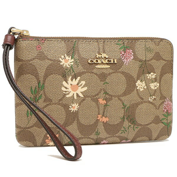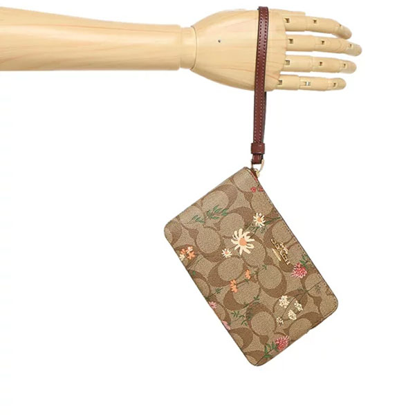 Coach Wristlet In Gift Box Small Wristlet Signature Wildflower Corner Zip Khaki # C8732