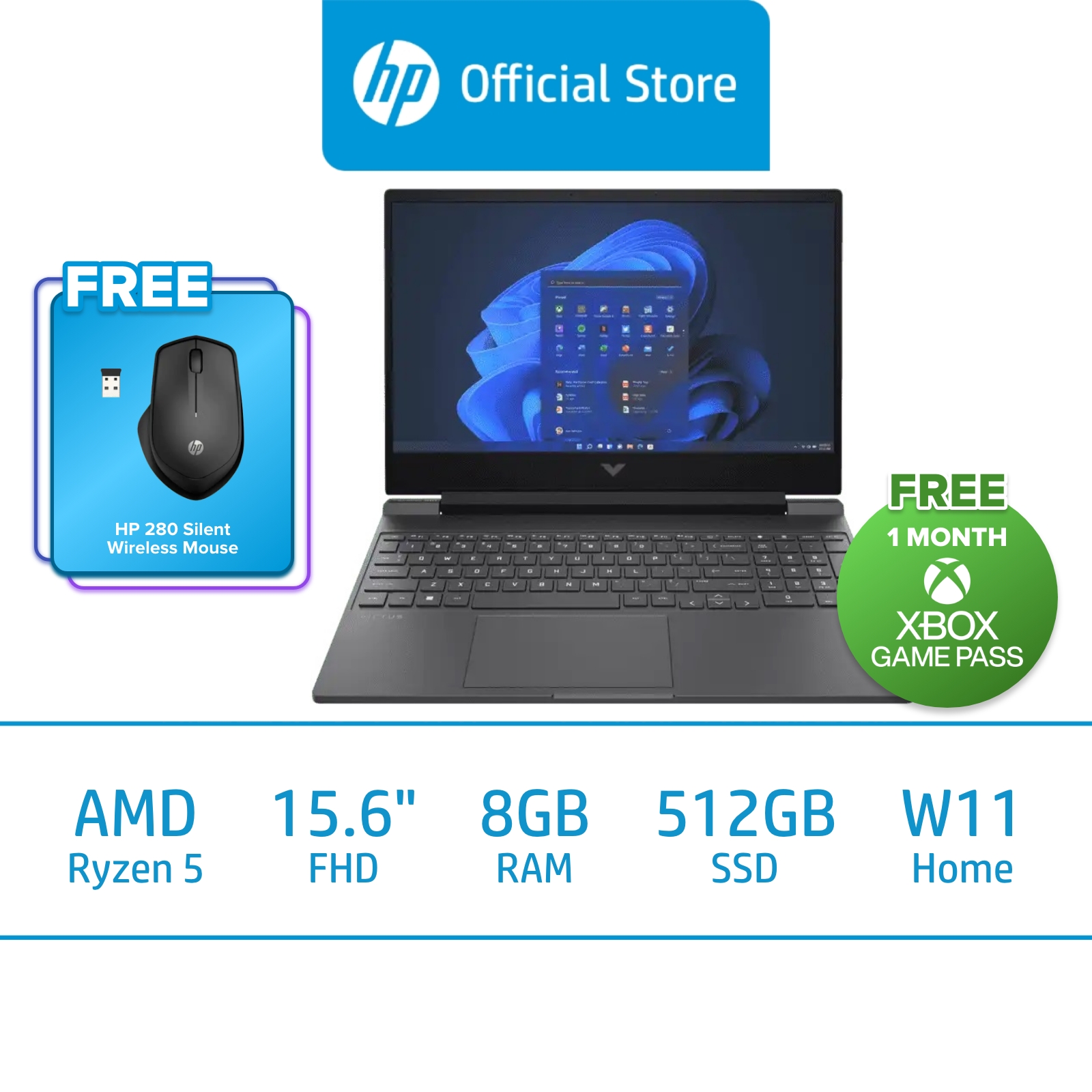 HP Victus Gaming Laptop 15-fb0013AX / AMD Ryzen 5 5600H / NVIDIA GeForce GTX 1650 / 8GB RAM / 512GB SSD / Windows 11 / 1 Year Onsite Warranty / McAfee LiveSafe