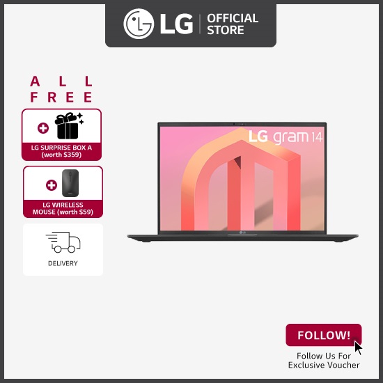 LG gram 14Z90Q 14" Laptop, 12th Gen Intel Core i5 processor, 16GB RAM, 512GB SSD, Win 11, 2 yrs warranty, + Free Delivery + Free Gift*