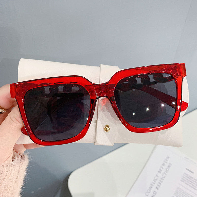 Sunglasses Ladies 2022 New Square Irregular Frame Chain New Retro Large Frame Sun Glasses PTQ