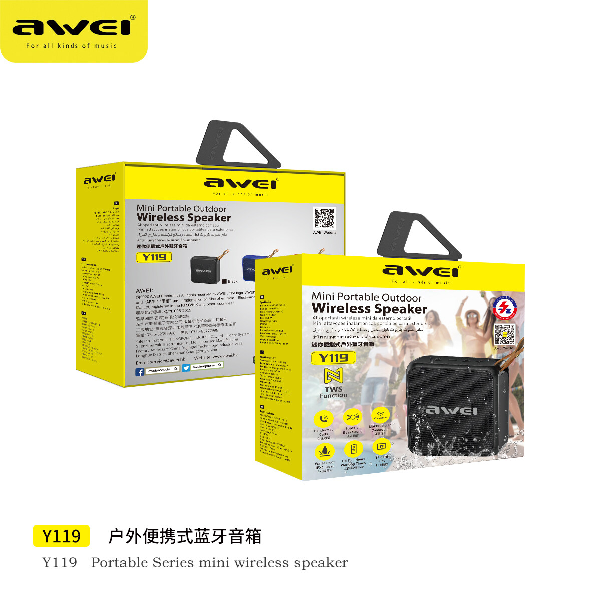 Awei Y119 Mini Portable Outdoor Wireless Speaker With TWS Function and Superior Bass Sound IPX6 Waterproof Superior Bass Quality Excellent Sound Quality