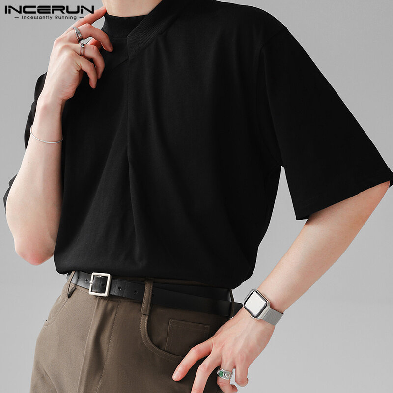 Product Description:Men's Solid color short sleeve tops.