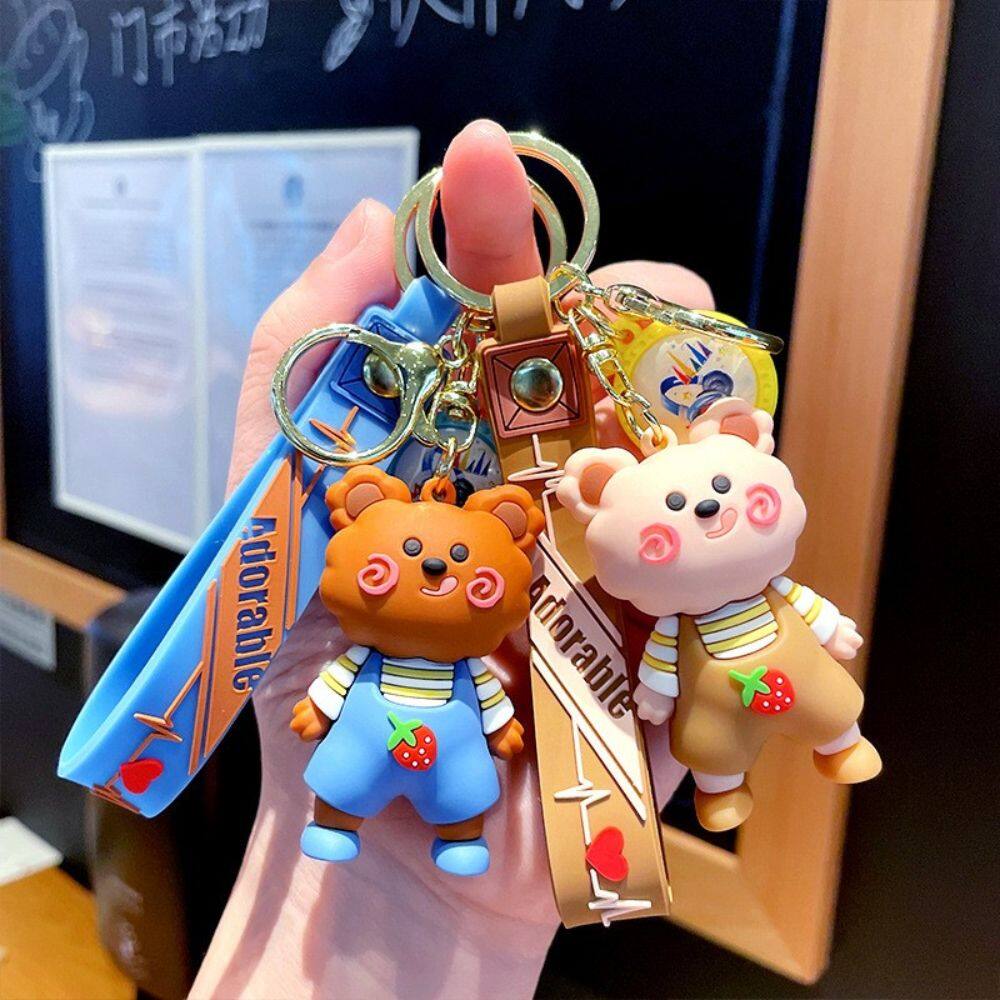 HUIHEYU Exquisite Cute Bear Bunny Doll Key Holder Car Key charms Couple Gift Blush Animal Keychain Wristlet Keychain Bag Ornaments Backpack Pendant