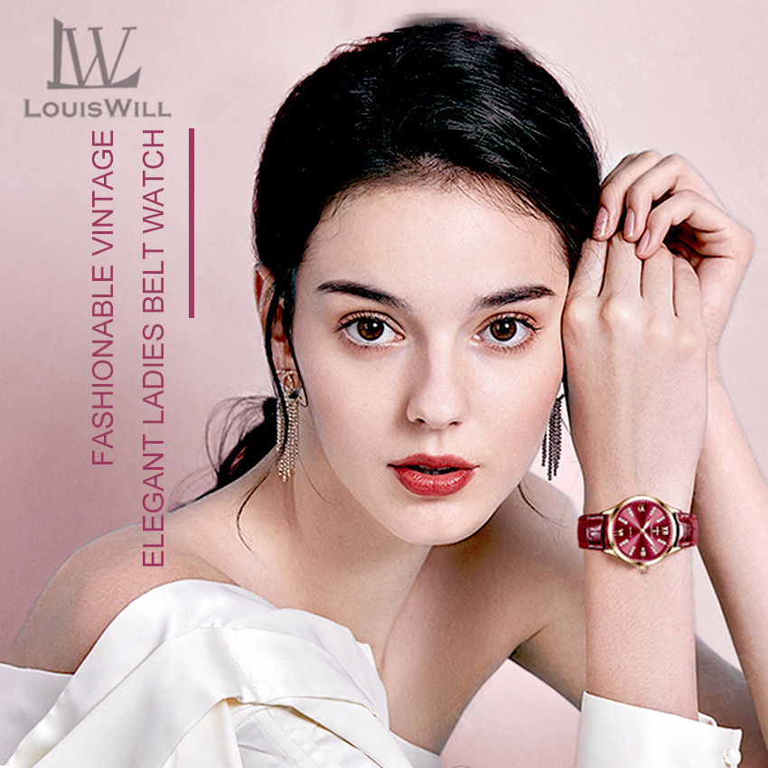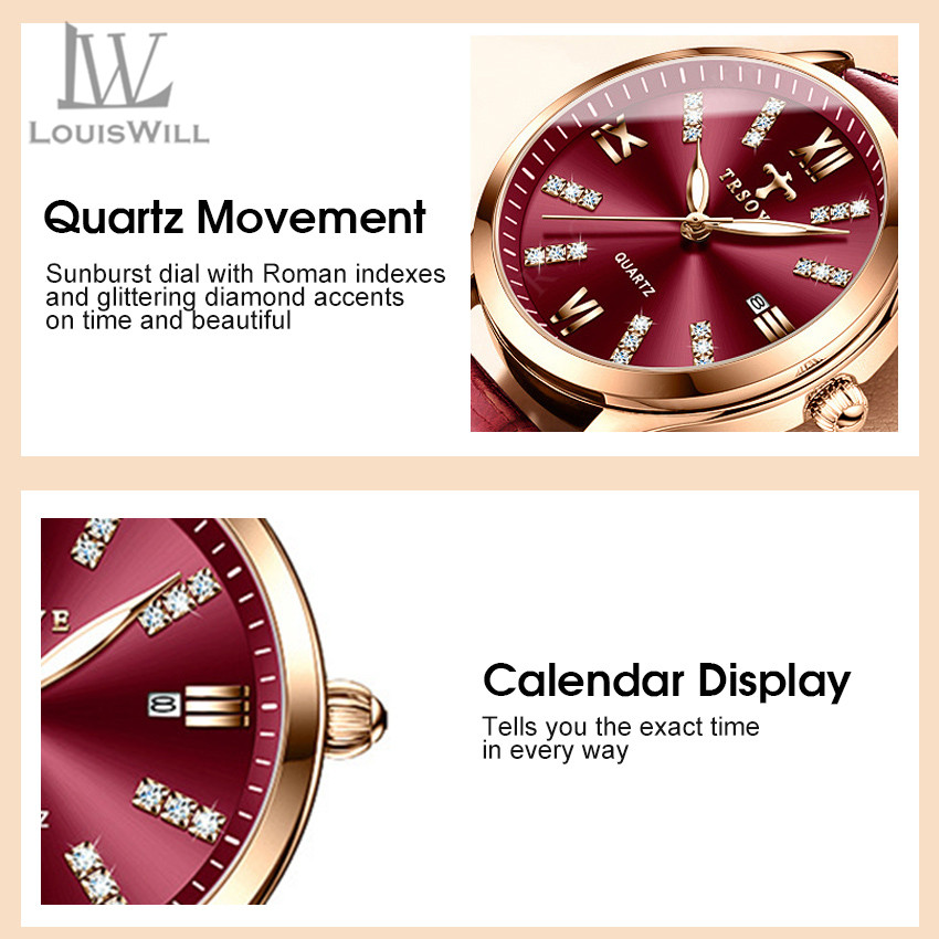 LouisWill Women Watches Diamond Casuals Retro Leather Strap Watches Quartz Watches Calendar Dial Luminous Pointer Watches 3ATM Waterproof Watches Business Wristwatch for Women Ladies