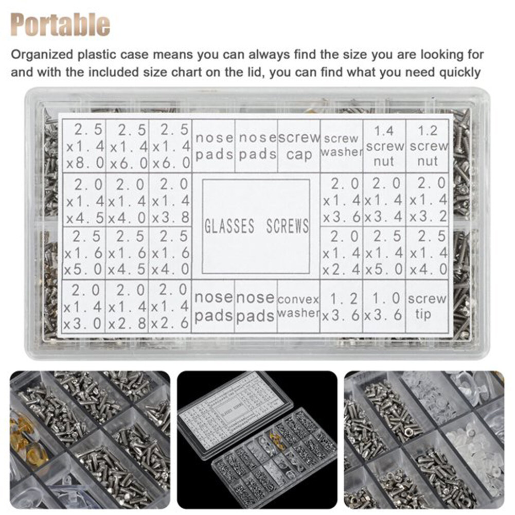 【Well classified】Packed in transparent plastic box with divider to classify the various items, easy to see the location of all the things.Glasses repair kit contains multiple type:3pcs screwdriver,1pc tweezers,1pc storage box,1000pcs screw.