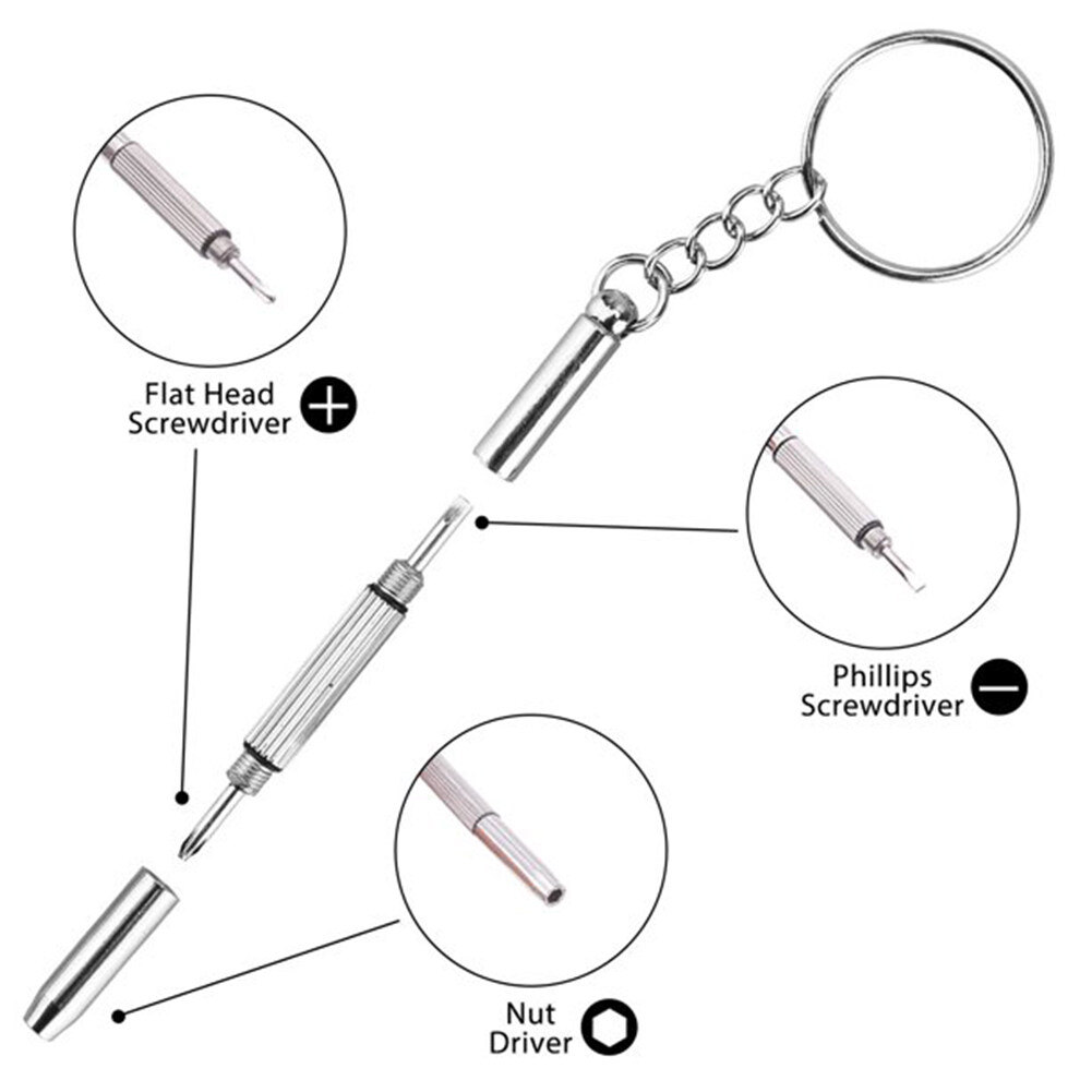 【Various in diameter】The sunglasses repair kit is equipped with a 3 in 1 screwdriver, which has flat head and a hex nut driver, especially for tighten small screws on eyeglasses and sunglasses.This eyeglass screw set have screws that not only different in length, more importantly, they are various in diameter.